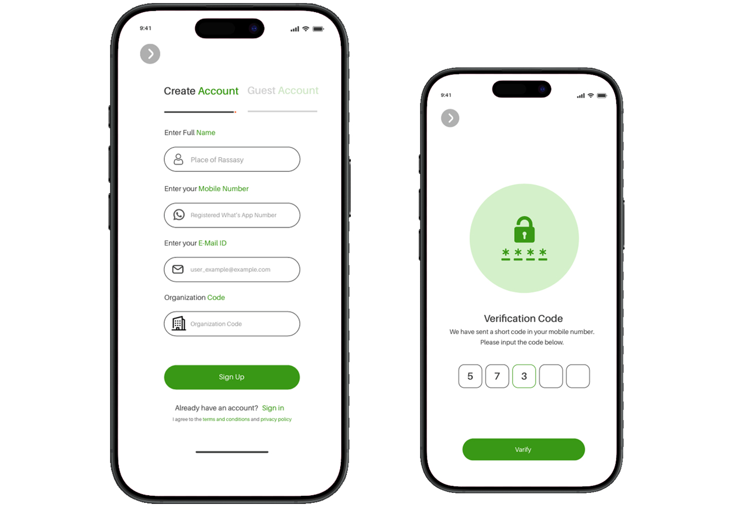 - Employees log in to the CraveKart app using Organization Unique Code.